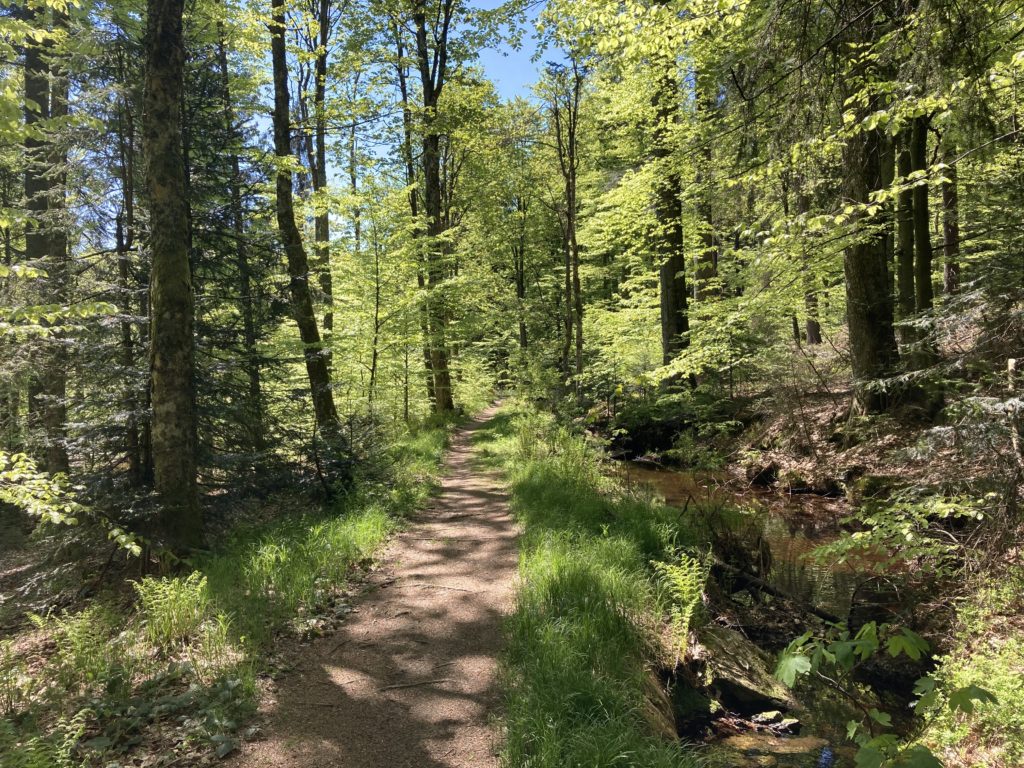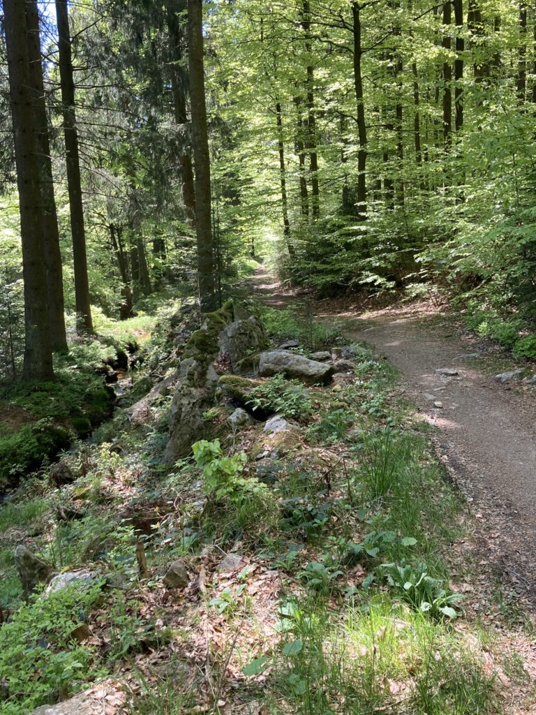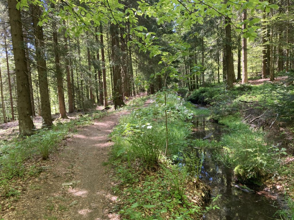 Dem Mühlgrabenweg folgen wir nun für einige Zeit. Der Bach führt heute wenig Wasser, an ein paar Stellen ist er sogar komplett trocken. Der Weg hier ist allerdings sehr schön.